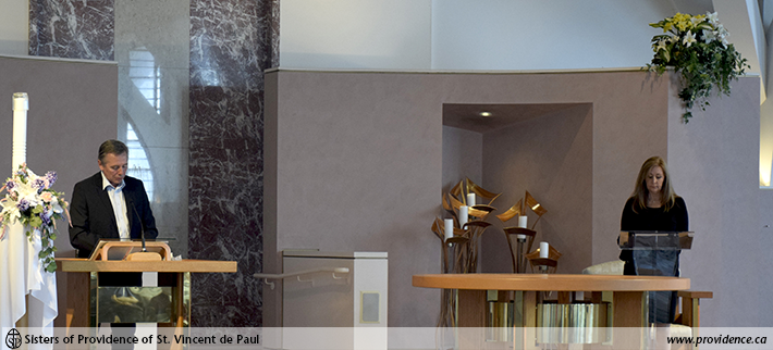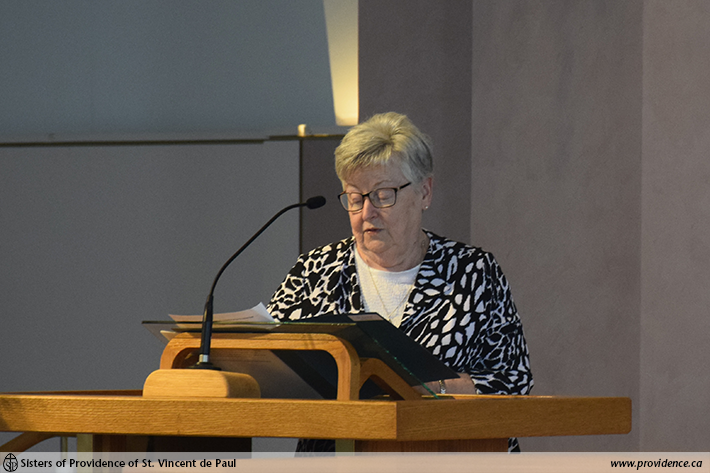Sr. Frances O’Brien delivered an opening prayer, asking God to guide and help Laurie in her position, giving her the spirit of wisdom and understanding, of right judgement and courage and of knowledge and reverence.