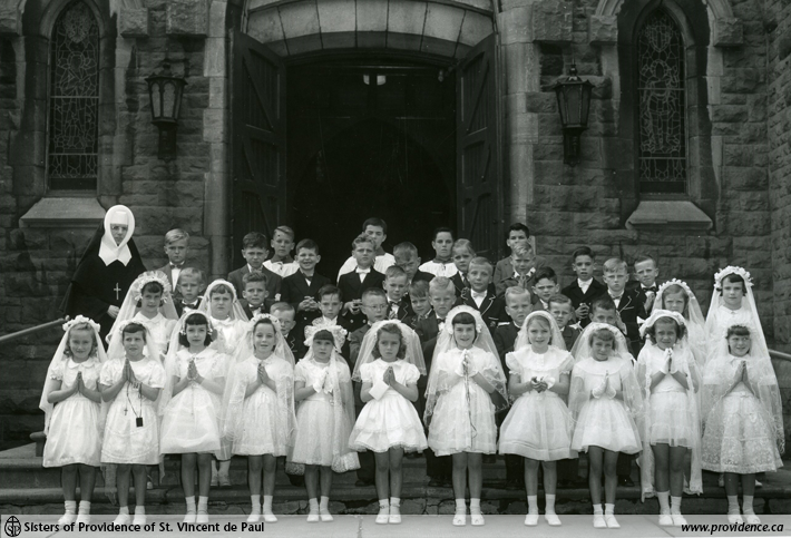 Grade one communion class, St. Mark’s Parish, Prescott ON 1954 (SPSVPA 014-216.2.2-3)
