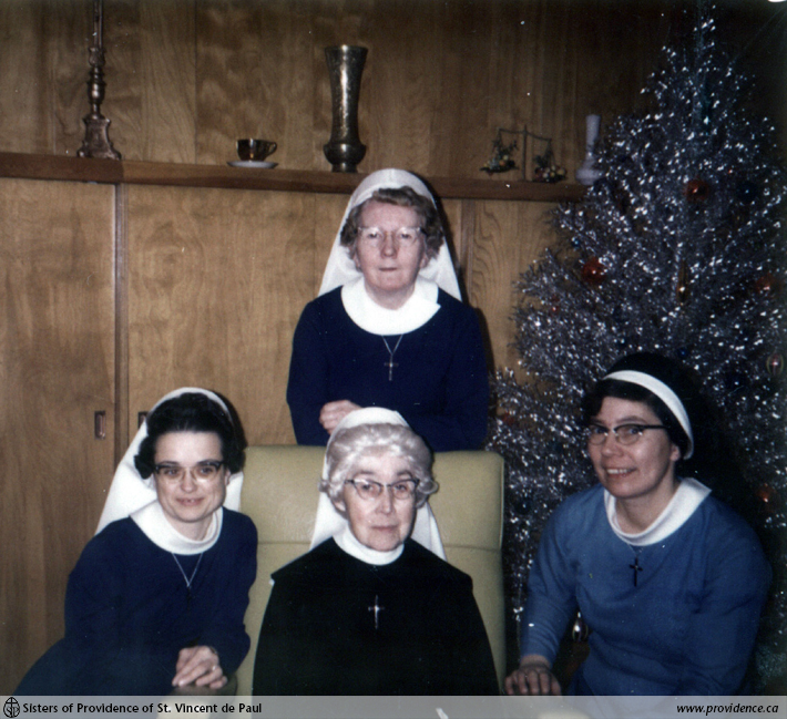 December 1973, St. Peter’s Convent, Trenton. Sitting left to right: Sr. Yvette Girard, Sr. Mary Rose of Viterbo Whalen, Sr. Yvonne Patry and standing: Sr. Gertrude Casey.