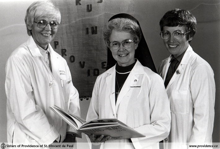 Sr. Evelyn O’Grady, Sr. Mary Mona, and Sr. Marilyn Kearns at St. Mary’s Hospital 1986. (SPSVPA 014-213.2.1-165.A)