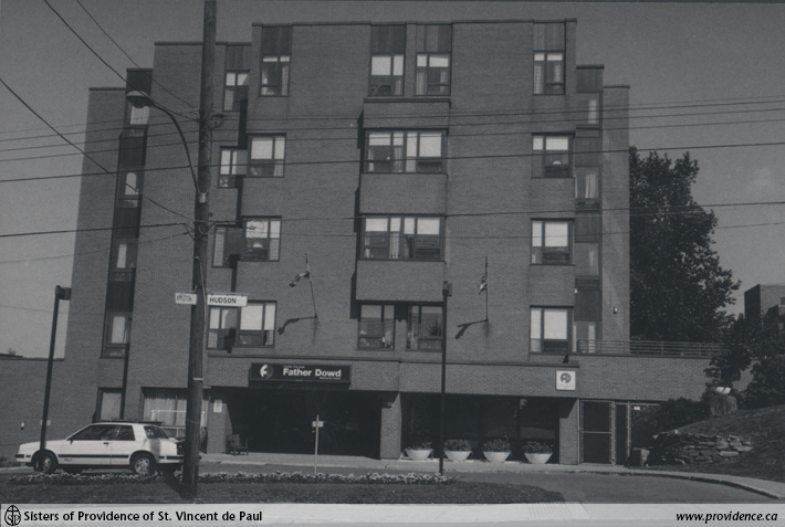 The Reverend Patrick Dowd, an Irishman from County Louth and a member of the Order of Sulpice was appointed as pastor of St. Patrick’s Parish in Montreal in 1859. In 1865, he established a refuge for the aged and infirm, naming it St. Brigid’s Home and committed it to the care of the Grey Nuns. After his death in 1891, the parish honoured his memory by renaming St. Brigid’s Home, the Father Dowd Memorial Home. In September 1944, the Sisters of Providence took over the administration and operation of the Father Dowd Memorial Home from the Grey Nuns. Ten Sisters of Providence arrived from Kingston to care for the 121 residents. The Sisters of Providence withdrew from the Father Dowd memorial Home in 1992. A total of 73 Sisters of Providence served at the Father Dowd Memorial Home between 1944 and 1992.