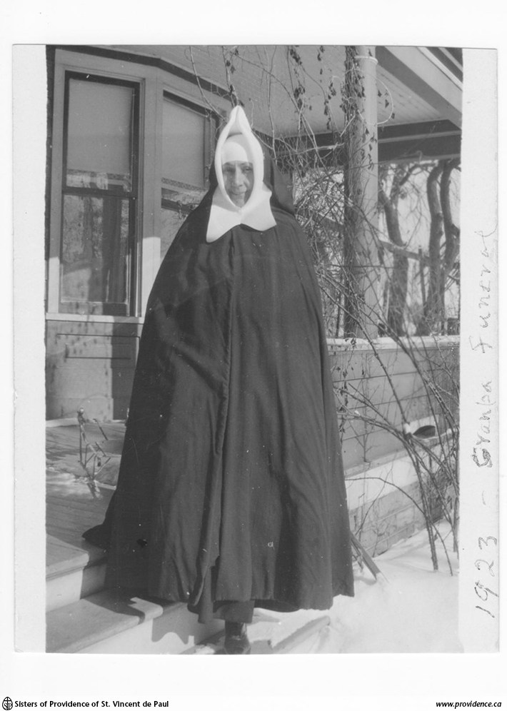 Sister Mary Raphael is noteworthy on several fronts. She was especially well known for her 42 years of service at Providence Hospital in Moose Jaw and was much beloved by the people of Moose Jaw. She was also the first Sister of Providence of St. Vincent de Paul to reach the age of 100. Sister Mary Raphael was born in 1877 and died at the ripe old age of 102 in 1979. And she is the only Sister of Providence who almost had a lake named after her!