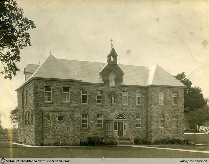 The Sisters of Providence started teaching at St. John’s school in Perth, Ontario in September 1892. Their first convent was a house which served them for over 10 years until they needed more space. In 1904 the congregation commissioned H.P. Smith, a Kingston architect, to design a convent for the Sisters, to be built beside the rectory of St. John’s Parish. In the Archives, we have some beautiful coloured presentation drawings, showing the proposed design of the new convent.