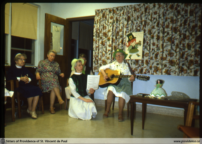 Sisters celebrating St. Patrick’s Day at St. Francis Convent, Smiths Falls ON in the late 1960s.