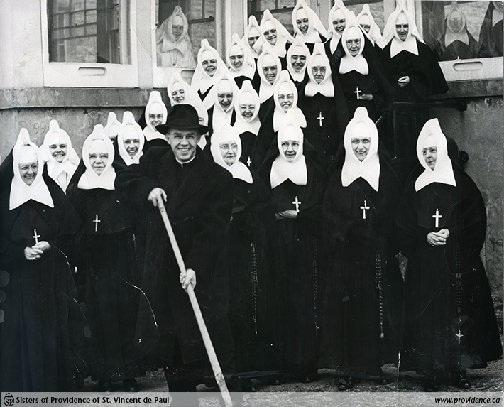 The sun room was used for recreation (down-time) by the Sisters when the weather didn’t encourage going outside, and to hold large meetings. There are also many mentions in the Congregational Annals of the sunroom being used to host dinners for outside guests, especially groups of priests after a special mass. The exterior steps to the sunroom were also used for group photographs.