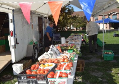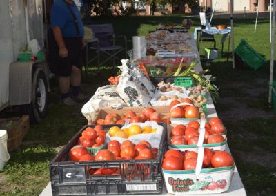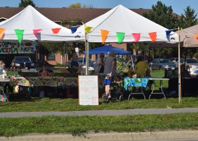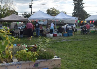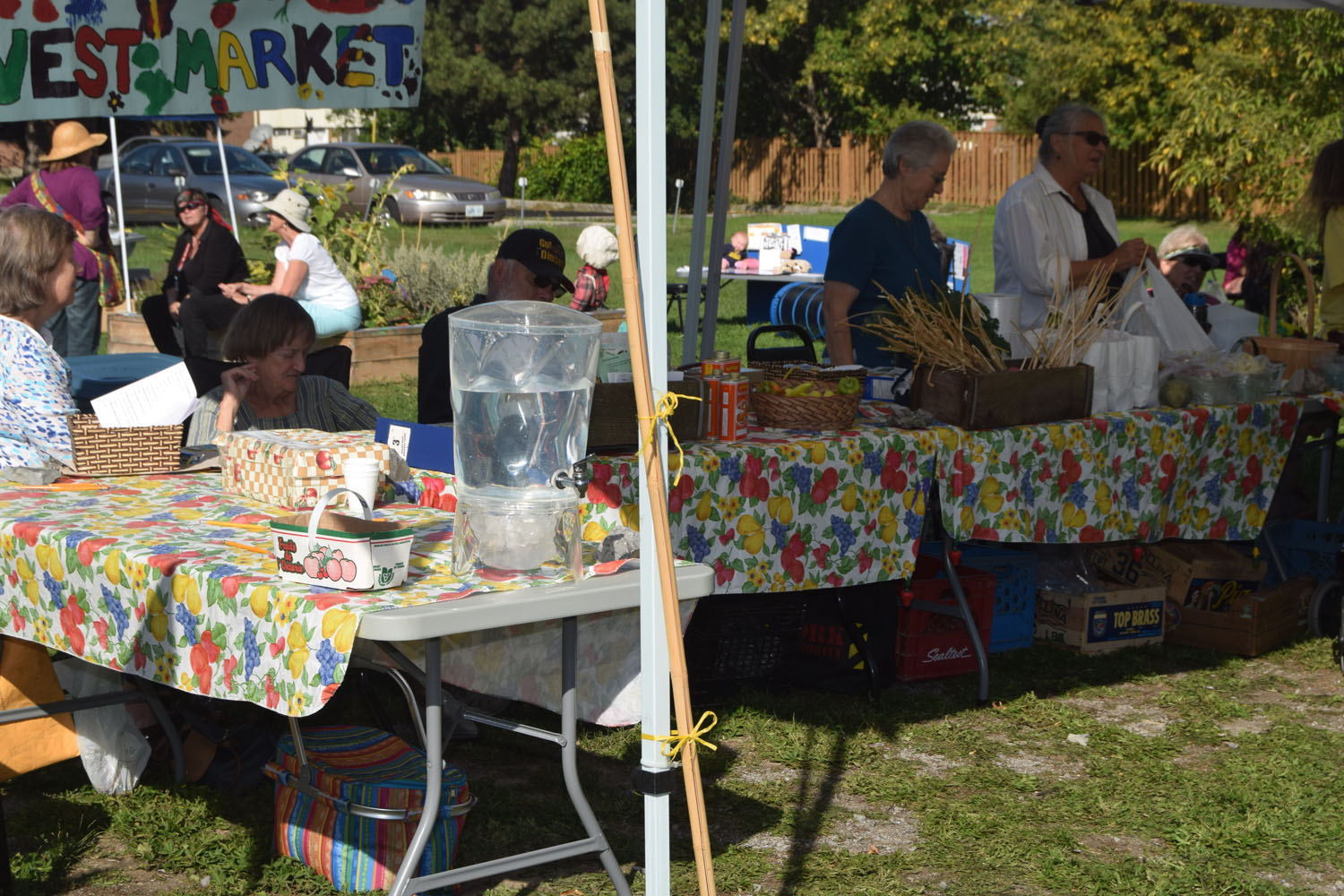 The Sisters of Providence are one of a handful of organizations and agencies that support the market. Providence staff member Tara Kainer is there faithfully, Wednesday after Wednesday, setting up tables, washing veggies, ensuring it all goes well. Providence Associate Susan Kennedy is involved lately as well. There are lots of familiar faces from Kingston’s food security community, on hand and ready to put good food into passing hands. This was a quiet day but typically about 200 people come buy. The rain doesn’t deter it nor did the heat of this past summer — though it wasn’t as pleasant as this fall day. The market ends at the start of October for another year.